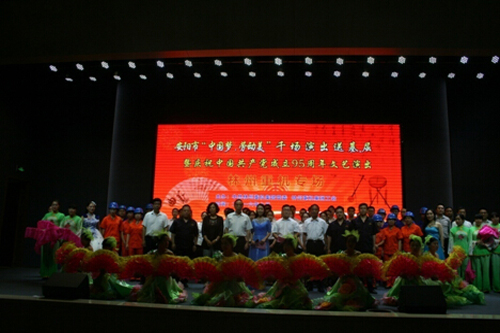 為慶祝中國共產(chǎn)黨成立95周年,樹立典型,表彰先進,7月1日,公司組織召開了 “七一”表彰會暨文藝演出活動。表彰會回顧總結(jié)了過去一年來的工作,并對在公司各條戰(zhàn)線上做出顯著成績的16名優(yōu)秀共產(chǎn)黨員予以表彰。表彰會結(jié)束后,公司精心組織排練的文藝節(jié)目向各條戰(zhàn)線上的職工進行了精彩的匯報演出。公司主要領(lǐng)導(dǎo)出席此次會議并觀看演出。